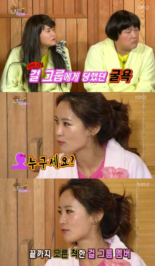 이에 출연진들이 해당 걸그룹에 대해 궁금해 했고, 김지민은 "2006년 내가 반짝 떴을 때 그 친구들이 신인이던 시절 내 대기실을 찾아와서 90도로 인사를 하기도 했는데 갑자기 뜨더니 그렇더라"고 씁쓸한 표정을 지었다.