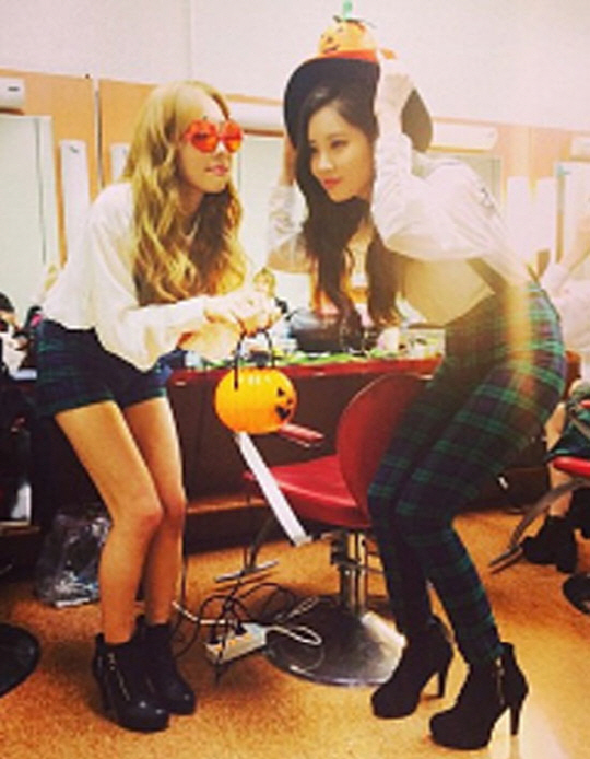 그룹 태티서 멤버 태연과 서현이 핼러윈데이를 맞아 재미있는 인증샷을 공개했다.
