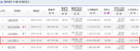 '나의 사랑 나의 신부'는 비수기로 알려진 10월 극장가에서 개봉작 중 유일하게 200만 이상의 스코어로 괄목한 만한 성과를 기록했다.