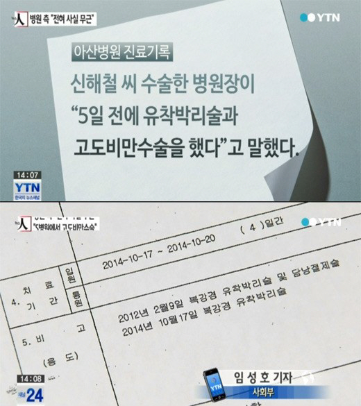 최 소장은 "천공이 생기는 원인은 주로 외상, 질병 등이 흔하지만 신씨의 경우 (장 협착)수술 부위와 인접해 발생했고 부검 소견상 심낭 내에 깨와 같은 음식 이물질이 발견됐다"며 "의인성 손상 가능성이 우선 고려돼야 할 것"이라고 말했다.