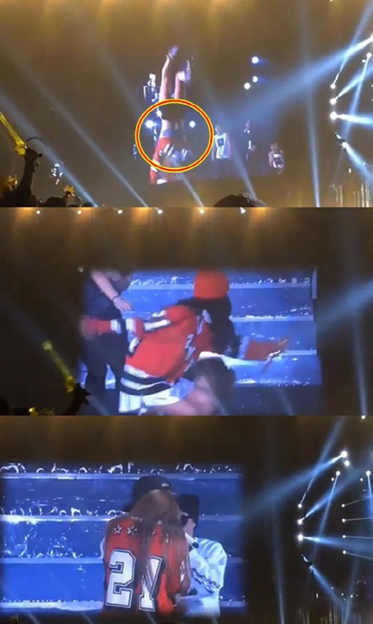 이날 무대에서 춤을 추던 박봄은 멋진 덤블링을 선보였다. 이때 입고 있던 티셔츠가 흘러내리면서 예상치 못했던 상의 속옷이 노출됐다.