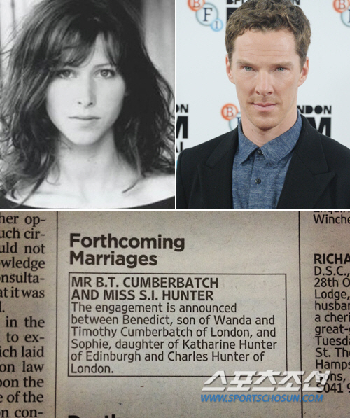 실제 타임 지면에 실린 경조사란에는 컴버배치와 소피 헌터의 약혼 소식이 담겨 있다.