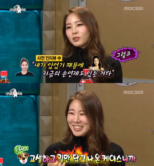 이날 MC들은 "신수지가 사전 인터뷰 때 '내가 있었기 때문에 지금의 손연재도 있는 거다'라고 했다"며 운을 뗐다.