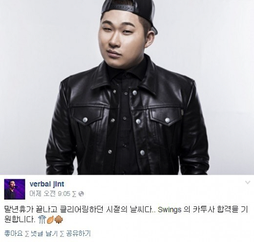 지난 5일 가수 버벌진트는 자신의 SNS를 통해 "말년휴가 끝나고 클리어링하던 시절의 날씨. Swings의 카투사 합격을 기원한다"는 글을 게재했다.