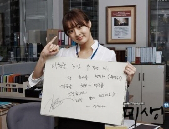 앞서 강소라는 '미생'의 시청률 3% 달성 시 한 회사를 무작위로 선택해 가을날 '치맥'을 쏘겠다고 공약을 내건 바 있다.