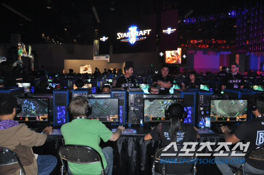 '블리즈컨 2014'의 참관객들이 '스타크래프트2'의 2번째 확장팩 '공허의 유산'을 직접 플레이해보고 있다. 애너하임=남정석 기자 bluesky@sportschosun.com