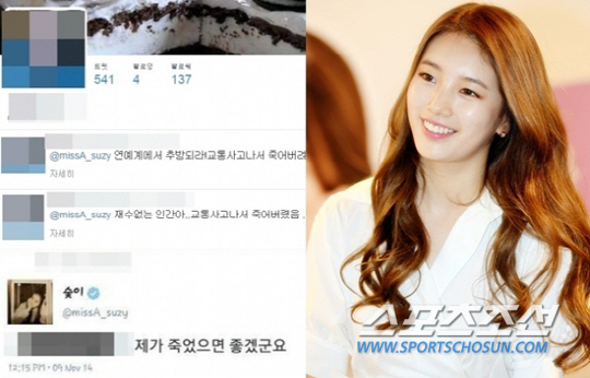 수지, "교통사고로 죽어버려" 악플에 "제가 죽었으면 좋겠군요" 직접 답변