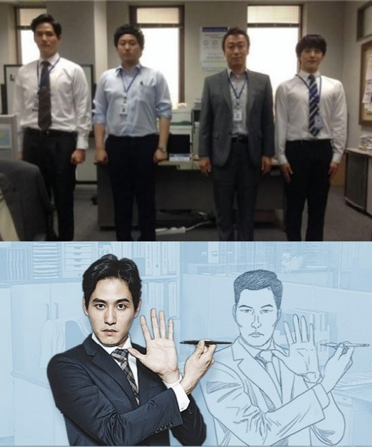 '미생' 영업 3팀의 팀원이 일렬로 선 단체샷을 공개한 가운데, 배우 박해준이 등장해 관심을 모은다.