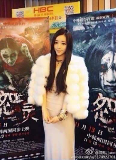 홍수아는 지난 11일(현지시간) 중국 베이징에서 열린 영화 '원령지로'(감독 동지견)의 공식 시사회에 참석했다.