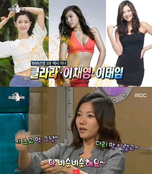 이날 MC들은 "1986년생 3대 섹시 미녀가 있다. 이채영, 클라라, 이태임인데 모두 키도 크고 비율까지 완벽하다"고 말문을 열었다.