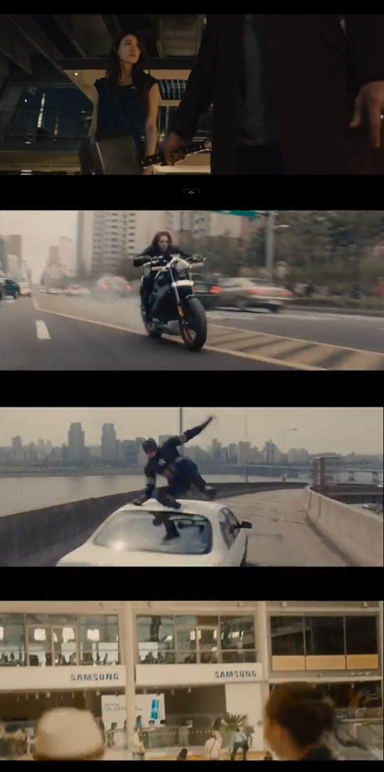 예고편 내용은 지난달 23일 공개된 버전과 크게 다르지 않았지만 배우 수현의 모습과 퀵 실버가 나오는 장면에서의 삼성 로고 노출 등이 추가됐다.