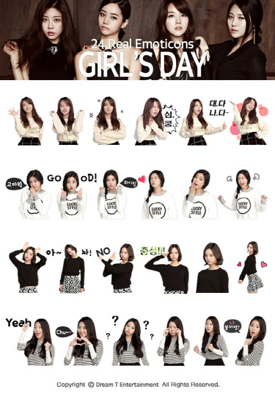 13일 소속사 드림티엔터테인먼트 측에 따르면 "다음카카오와 함께 걸스데이 멤버들의 3초 정도의 짧은 영상을 이모티콘화하여 현실감 있는 감정표현을 가능케 하는 '리얼콘'을 제작하여 카카오톡을 통해 선보인다"고 밝혔다.