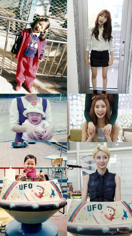 소속사 판타지오 뮤직은 14일 다음뮤직을 통해 멤버들의 과거 사진을 공개했다. 리더 앨리스는 입을 딱 벌린 엉뚱한 포즈로 장난끼 어린 모습을 보였고 '9등신 바비인형' 나라는 또렷한 서구형 이목구비를 자랑했다. 유영은 애교 넘치는 눈웃음을, 라임은 컬러풀한 패션 센스를 선보였다. 서영은 앙증맞은 모습으로 여름은 큰 두 눈에 앞니 빠진 모습으로 귀여움을 뽐냈다.