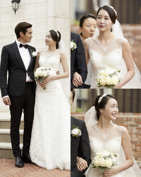 SBS 주말 드라마 '미녀의 탄생'에서 미스코리아 출신의 인기 아나운서이자 달콤, 살벌한 여인 '교채연' 역으로 열연을 펼치고 있는 그가 정겨운(이강준 역)과의 결혼식 촬영 모습을 선보인 것.