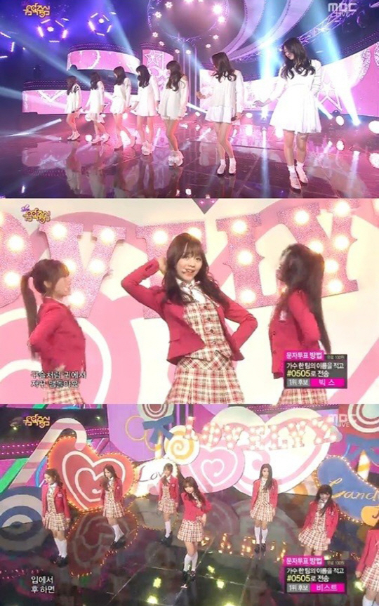 러블리즈는 15일 방송된 MBC '음악중심'에서 데뷔 앨범 타이틀곡 '캔디 젤리 러브(Candy Jelly Love)'와 '어제처럼 굿나잇' 무대를 선보였다.