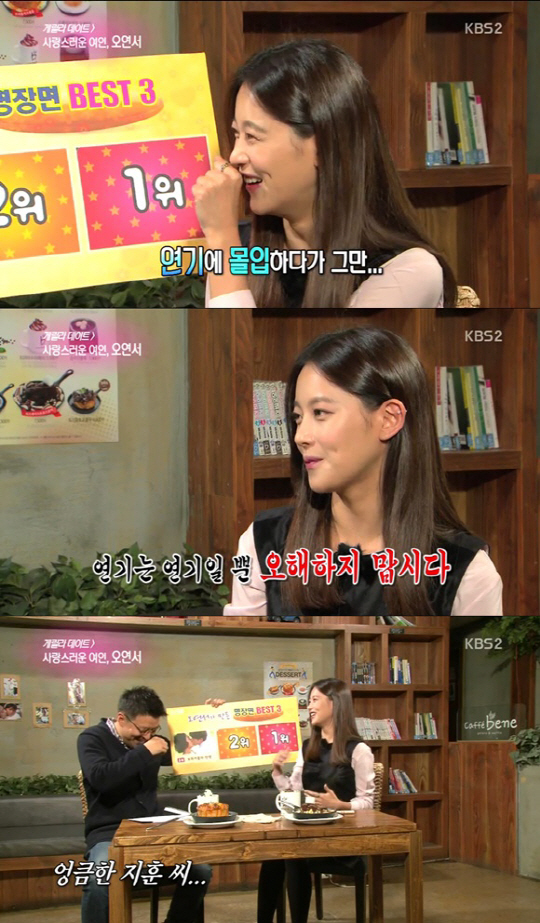 이날 오연서는 MBC '왔다 장보리'에서 김지훈과의 논두렁 키스신에 대해 온몸을 너무 만지시더라. 그래서 감독님한테 촬영 못하겠다'라고 했다"며 당시 상황을 회상했다.