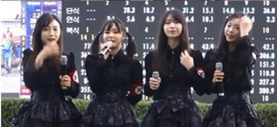하지만 누리꾼들은 의상의 전체적인 콘셉트부터 디테일까지 나치와 흡사하다며 비판을 퍼붓고 있다. 특히 서양인들에게 나치 완장이란 한국인들에게 전범기 이상으로 충격적인 상징이라 더욱 파문이 커지고 있다.