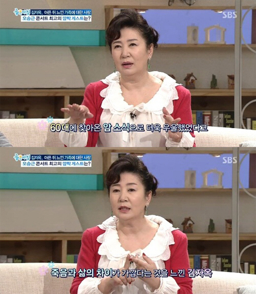 또 김자옥은 큰딸 오지연 씨의 결혼식을 준비하면서 "친엄마가 아니기 때문에 더 신경 써서 멋지게 해주고 싶은 마음이 있다. 그동안 잘 못해줘서 미안하다는 느낌도 있다"라면서 "처음 만났을 때는 오승근과 교제하지 않을 때였다. 그런데 많은 여자들 중 '누가 엄마였으면 좋겠냐' 물었더니 나를 찍더라. 인연이 되려고 그런 것 같다"라며 애틋한 마음을 드러내기도 했다.