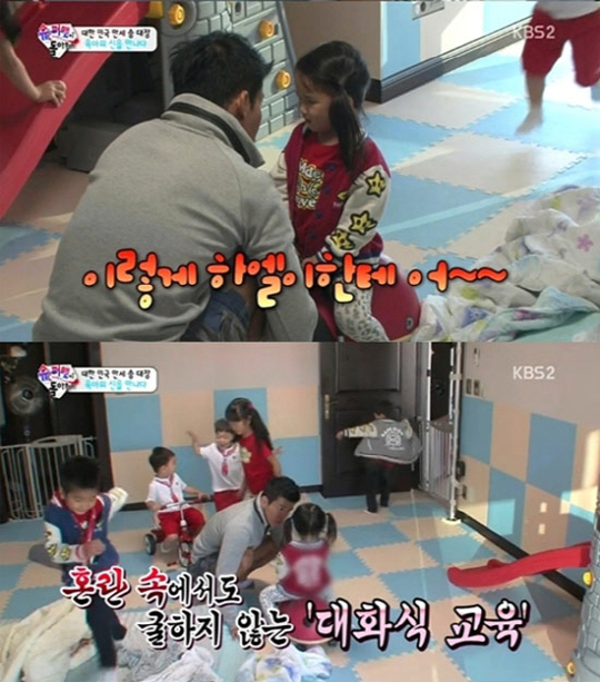 션은 네 아이의 아빠다운 능숙한 솜씨로 6명의 아이들을 다뤘다. 션은 자신의 딸이 울음을 터트리자 차분하게 대화로 딸을 달래는가 하면, 여섯 명의 아이들과 동시에 놀아주는 남다른 모습으로 시청자들은 물론 송일국을 감탄케 했다.