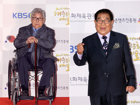 17일 서울 종로구 연건동 홍익대 대학로 아트센터에서 열린 제5회 대한민국 대중문화예술상 시상식에는 구봉서와 송해가 참석해 은관 문화훈장을 받았다.