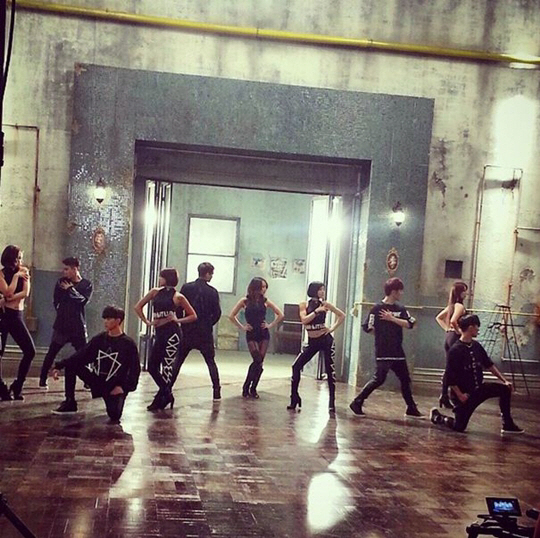 공개된 사진 속에는 '마마' 뮤직비디오의 촬영장 모습이 담겨있다. 니콜은 댄서들 사이에서 허리에 손을 얹은 채 포즈를 취하고 있다.