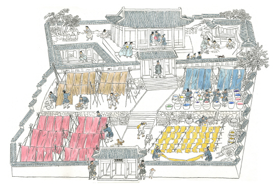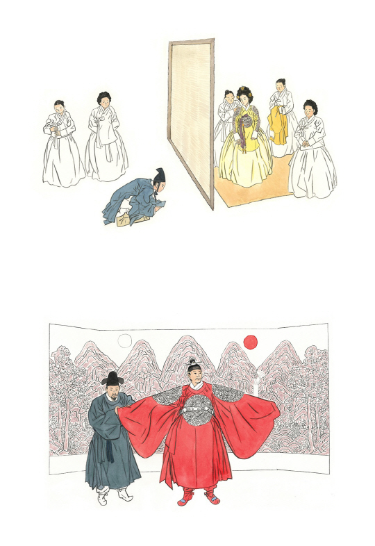 또한 '상의원'의 또 다른 주인공인 '상의원' 소개를 위해 전시회, 동화책 집필, 삽화 작업 등 다양한 활동을 펼치고 있는 장선환 작가가 함께 했다. 장선환 작가는 독특한 색채와 그림체로 우리에게 알려지지 않은 공간 '상의원'을 표현했다. 이번 일러스트 작업은 '상의원' 공간 소개와 '왕의 옷을 만드는 사람들'에 대한 소개로 지금껏 드러나지 않았던 역사 속의 풍경을 동양화 풍 일러스트로 담아냈다.