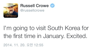 러셀 크로우는 내년 1월 '워터 디바이너' 한국 개봉시기에 맞춰 내한해 한국 관객들과 특별한 시간을 가질 예정으로, 현재 자세한 일정은 논의 중에 있다.