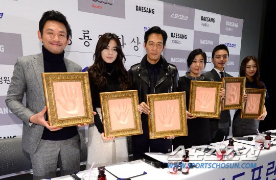 20일 오후 서울 영등포구 여의도동 CGV여의도에서 제35회 청룡영화상 핸드프린팅 행사가 열렸다. 핸드프린팅 행사에는 '신세계'로 남우주연상을 거머쥔 황정민과 '감시자들'로 여우주연상을 받은 한효주, 남우조연상 수상자 '관상'의 이정재, 여우조연상 수상자 '소원'의 라미란, '화이: 괴물을 삼킨 아이'로 신인남우상을 거머쥔 여진구, 신인여우상 수상자인 '마이 라띠마'의 박지수 등 영광의 주인공들 6명이 참석했다. 특히, 올해 핸드프린팅 행사는 봉만대 감독이 MC를 맡아 눈길을 끌었다. 한편 2014년 피날레를 장식할 한국영화 축제의 밤, 제35회 청룡영화상 시상식은 12월 17일 세종문화회관에서 열린다. 본인의 핸드프린팅과 함께 포즈를 취하고 있는 배우들. 송정헌 기자 songs@sportschosun.com