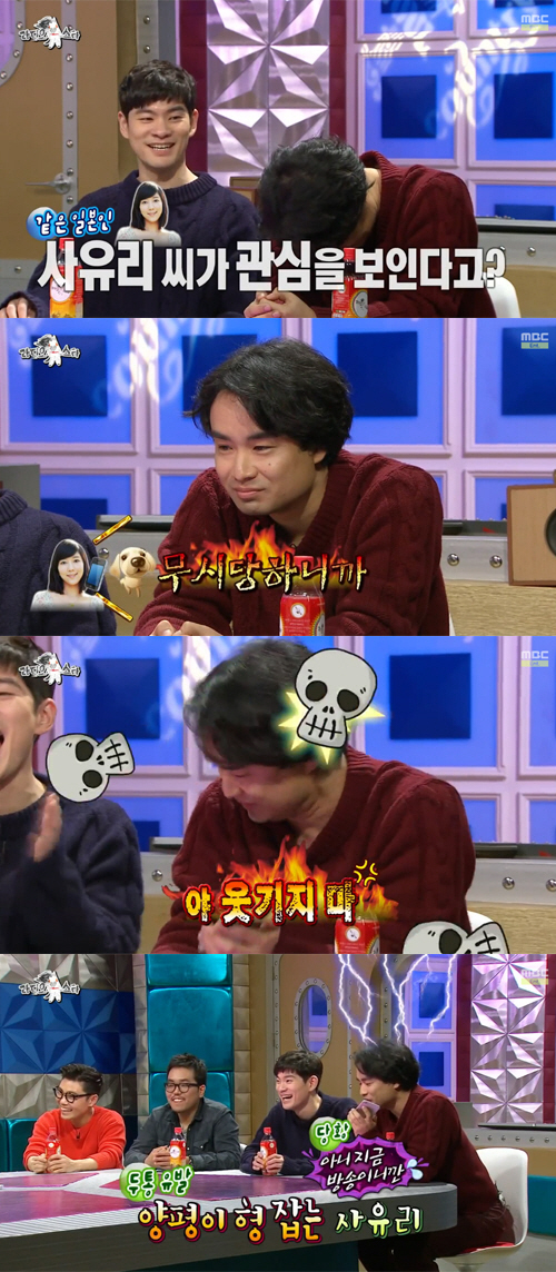 이날 MC 김구라는 "사유리가 양평이형에게 관심을 보인다더라. 사유리가 은근히 통통해서 양평이형 이상형에 딱 맞는다"며 운을 뗐다.