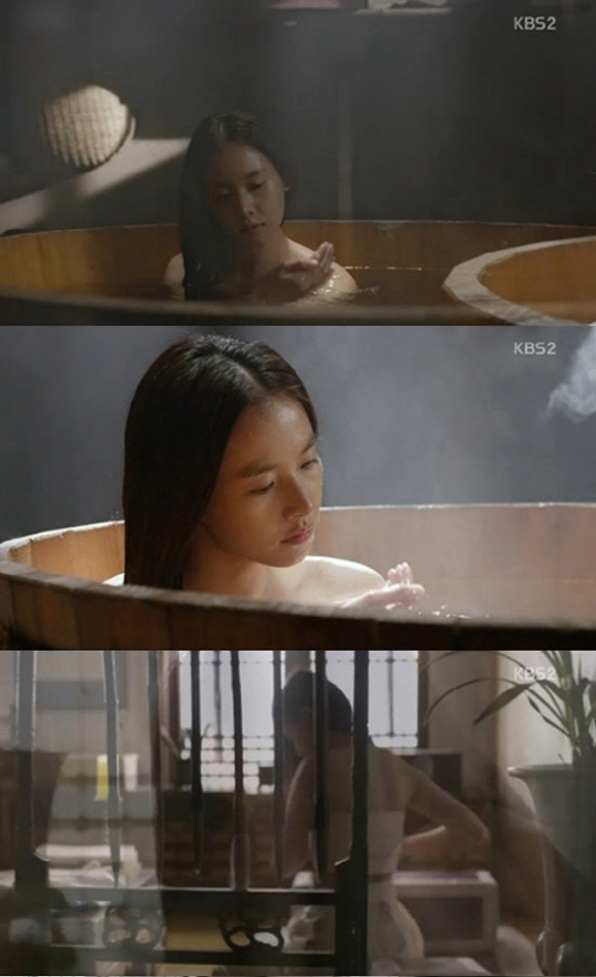 긴 머리를 늘어뜨리고 매끈한 살결을 노출한 조윤희는 남장 속에 감춰놓았던 고은 살결과 가녀린 몸으로 시청자들의 시선을 집중시켰다. 특히 여인임을 들키지 않으려 새벽 광 안의 목간통에 몸을 담근 상념에 젖은 듯한 표정에서는 처연함마저 느껴졌다.