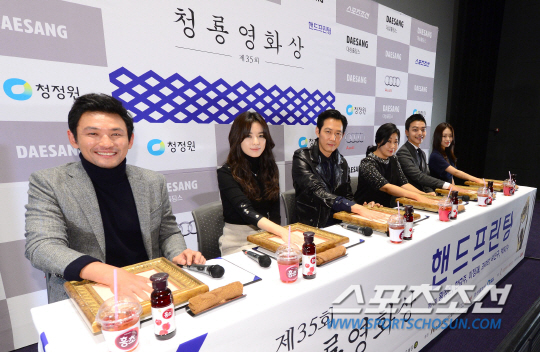 20일 서울 여의도 CGV에서 제35회 청룡영화상 핸드프린팅 행사가 열렸다. 주인공은 지난해 시상식의 꽃이었던 영광의 얼굴들. 황정민(남우주연상) 한효주(여우주연상) 이정재(남우조연상) 라미란(여우조연상) 여진구(신인남우상) 박지수(신인여우상)다. 짜릿했던 환희의 순간을 되새기며 제34회 청룡영화상 수상자들이 1년만에 한자리에 모였다.