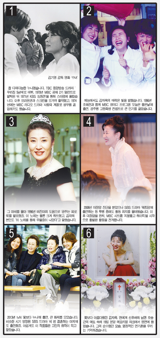 6. 꽃보다 아름다웠던 김자옥. 연예계 선후배와 남편 오승근의 애도 속에 19일 분당 메모리얼 파크에서 영면에 들었습니다. 그의 순수했던 모습, 열정적인 연기혼을 우리는 기억하겠습니다.