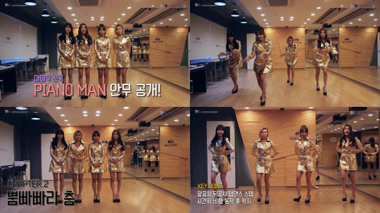 멤버 화사는 '핑거싱크'의 키포인트로 엣지 있는 손가락 동작과 요염한 표정을 꼽았고, 이에 멤버들은 각자 요염한 포즈를 취해 보여 웃음을 자아낸다. 이어 '붐빠빠라 춤'은 텝댄스를 활용한 현란한 스텝이 돋보이는 안무로, 마치 뮤지컬을 연상케 하는 화려하고 역동적인 '피아노맨' 퍼포먼스에 힘을 실어준다.