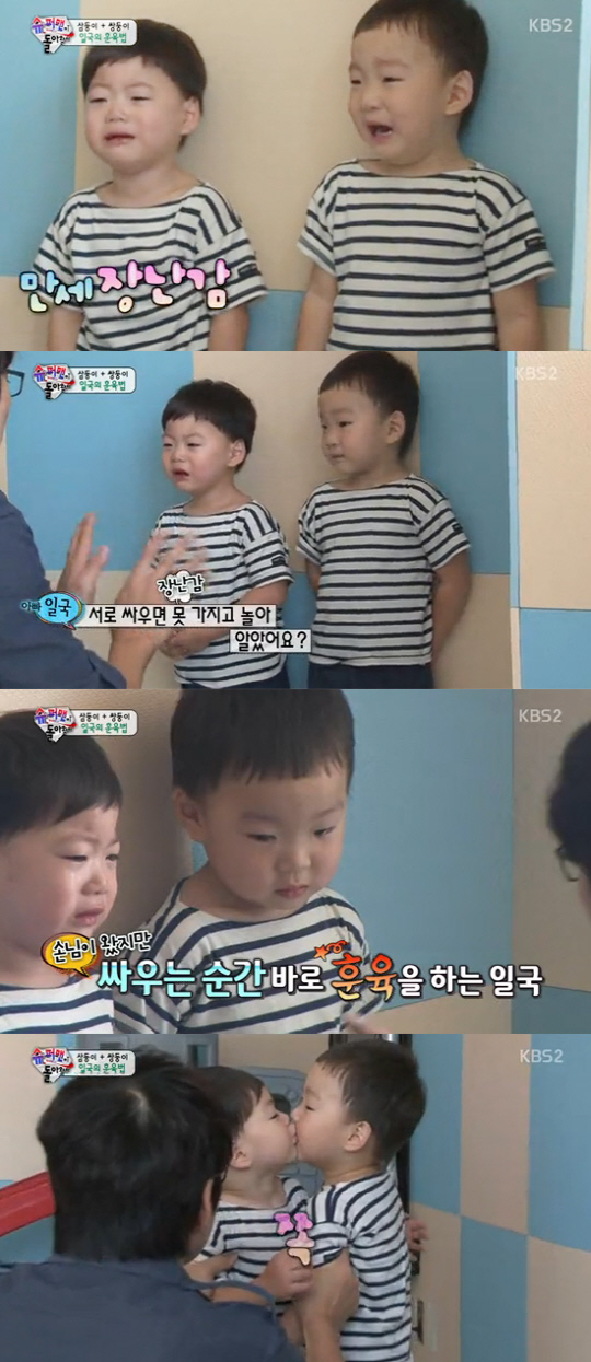슈퍼맨이 돌아왔다 송일국, 삼둥이 훈육법 마지막 단계는 '포옹하고 뽀뽀하기'