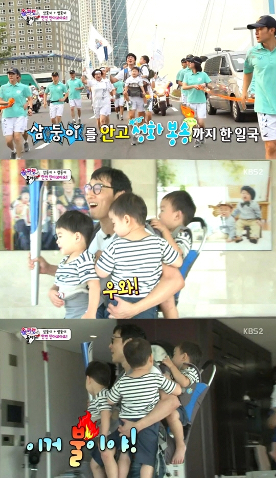 '슈퍼맨이 돌아왔다' 이휘재가 삼둥이 성화봉송을 재연했다.