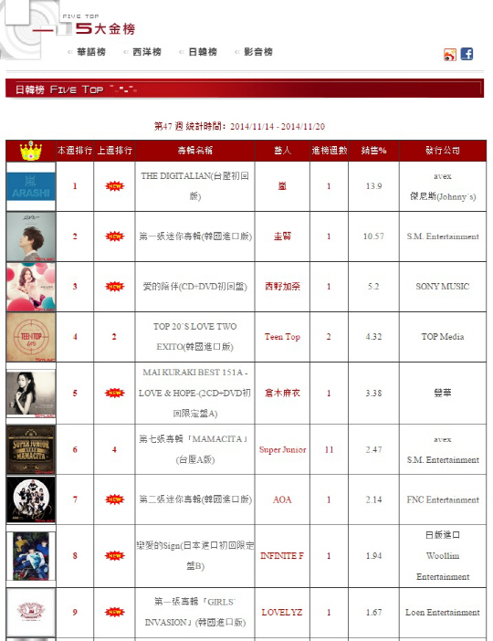 걸그룹 러블리즈의 데뷔 앨범 '걸스 인베이전(Girls' Invasion)'이 일본 타워레코드 1위에 이어 대만 음반 차트에서 TOP 10에 진입했다.