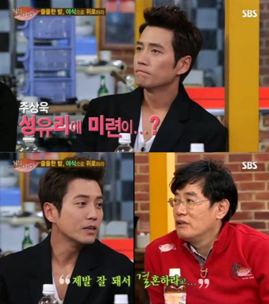 이에 MC들이 "주상욱이 성유리에게 뭔가 마음이 있는 것 같다"고 의심의 눈초리를 보내자, 주상욱은 "성유리에게 관심이 있었다면 아마 2년 전에 고백했을 것이다"라며 "사람 일은 어떻게 될지 모르지 않느냐"고 답해 웃음을 자아냈다.
