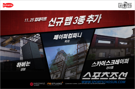 '블랙스쿼드'가 공개서비스 2주만에 신규 맵 3종을 추가하고, 불편사항을 개선하는 등 이용자들의 만족감을 높여주기 위한 콘텐츠 업데이트를 진행했다.