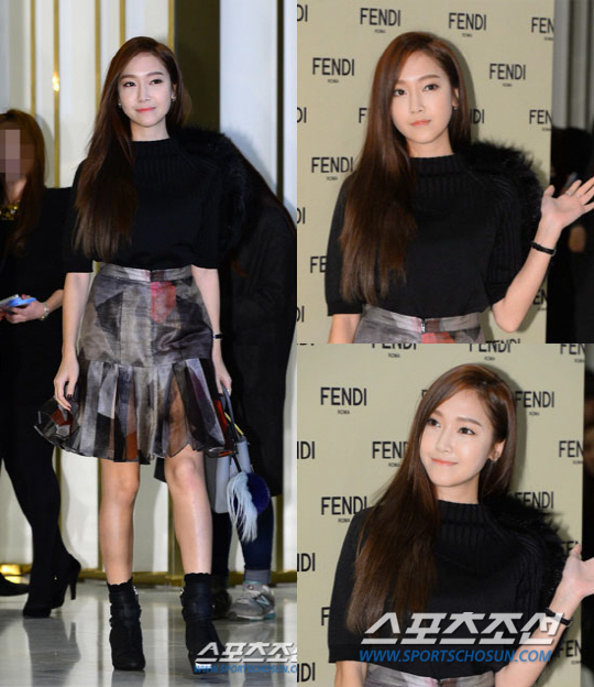 현장에 등장한 제시카는 깔끔한 생머리로 청순한 분위기를 연출했다. 또 털이 달린 블랙 상의와 실크 소재의 치마로 우아한 스타일을 연출했다.