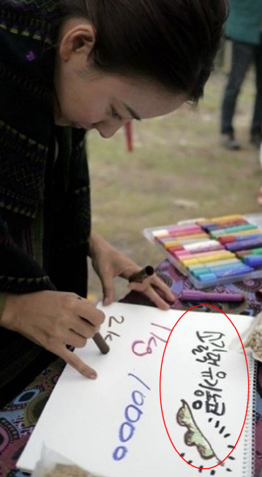 그와 함께 스케치북에 '소길댁(이효리가 살고 있는 마을 이름) 유기농 콩'이라고 적고 있는 이효리의 모습이 공개됐다.