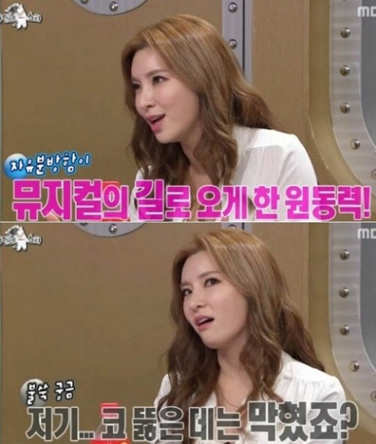 정선아는 "뮤지컬 '위키드' 공연에서 내가 매 회마다 뺨을 때리는 신이 있다. 장난삼아 '옥주현의 뺨을 후려 갈기겠습니다'라고 했다"라면서 "실제 공연 때는 내가 세 번이나 맞았다. 원래는 다 속임수다. 음향과 맞춰서 하는 건데 세 번 정도 진짜 때리더라"라고 하소연해 좌중을 웃겼다.