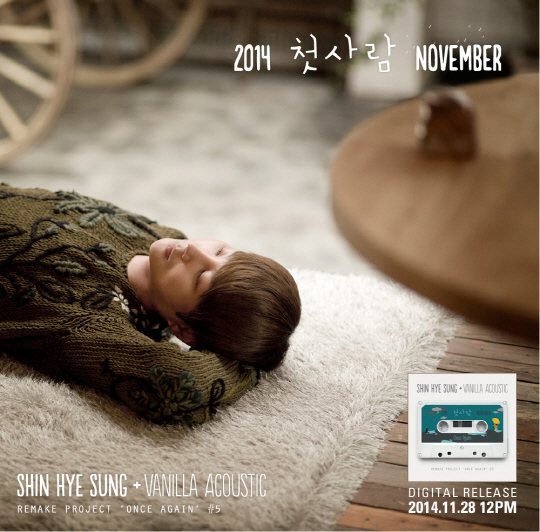 지난 7월부터 자신의 지난 명곡들을 새롭게 재해석 하는 리메이크 프로젝트 'Once again'을 이어오고 있는 신혜성이 28일 정오 각종 온라인 음악 사이트를 통해 바닐라 어쿠스틱의 메인보컬 성아와 함께 한 'Once again'의 다섯 번째 곡 '첫사람'을 발표하는 것.