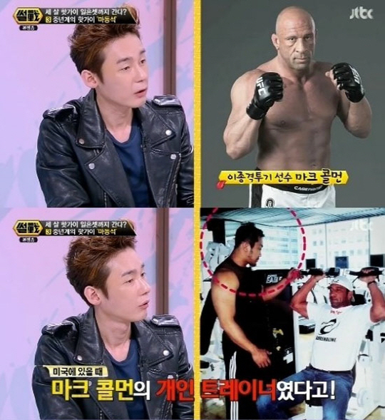 이에 허지웅은 이종격투기 선수 마크 콜먼을 언급하며 "마동석의 여러 이력을 보면 놀랍다. 마크 콜먼의 개인 트레이너였다고 한다. 또 콜럼버스 주립대학 체육학과를 나와 영어도 잘한다고 하더라"고 마동석의 이색 이력을 밝혔다.