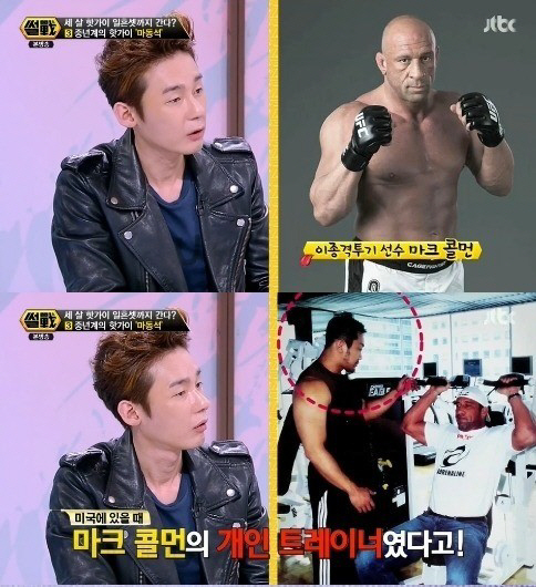 이날 허지웅과 김구라는 "마동석의 여러 이력을 보면 놀랍다"며 "미국 이종격투기 선수 마크 콜먼의 개인 트레이너였다고 한다. 또 콜럼버스 주립대학 체육학과를 나와 개인 트레이너를 많이 했고, 영어도 잘한다더라"고 마동석의 반전 이력을 공개했다.