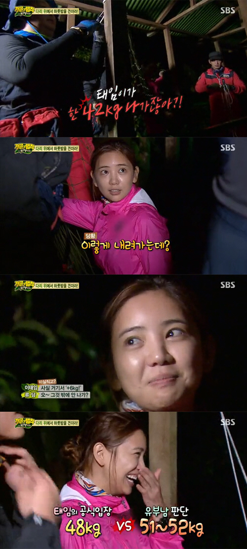 이날 병만족은 해먹 설치에 나섰고, 남자가 매달려도 거뜬한 튼튼한 해먹을 설치했다. 박정철은 "태임이 정도는 충분히 해먹에 앉을 수 있다"고 말했고, 류담은 "이태임 몸무게가 42kg 나가지 않냐"며 넌지시 물었다.