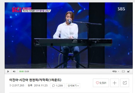 'K팝스타4' 이진아의 '시간아 천천히'가 200만뷰를 돌파했다.