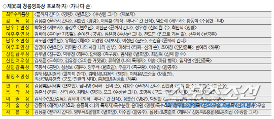 제35회 청룡영화상 시상식은 오는 17일 오후 5시45분 서울 세종문화회관에서 성대하게 열린다.