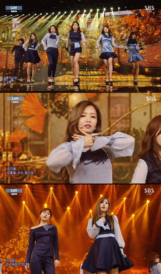 에이핑크는 지난 달 30일 방송된 SBS '인기가요'에 출연해 신곡 '러브(LUV)' 무대를 선보였다.