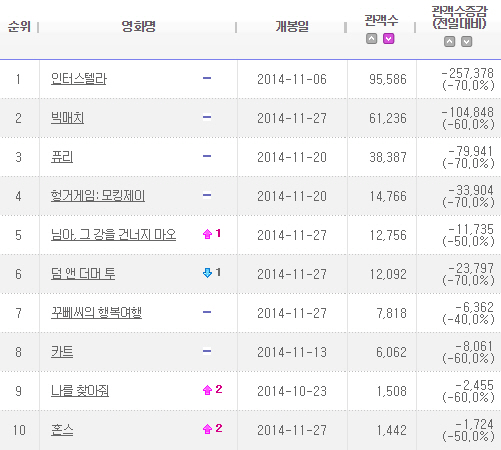 감동 다큐멘터리 영화 '님아, 그 강을 건너지 마오'(감독 진모영, 제공 대명문화공장, 공동제공: CGV아트하우스, 대명라이프웨이, 공동배급: CGV아트하우스, 대명문화공장, 제작 아거스필름)가 할리우드 블록버스터의 거센 공세에서 선전 중이다. 기대 이상의 독보적인 좌석점유율을 과시하며 박스오피스 역주행을 하고 있다. 76년 평생의 연인, 백발의 노부부가 들려주는 진정한 사랑의 메시지를 담은 '님아, 그 강을 건너지 마오'는 개봉 둘째 주에도 뜨거운 흥행세를 과시하며 높은 좌석점유율을 기록하며 화제를 모으고 있다. 특히 '인터스텔라' '헝거게임: 모킹제이' '퓨리' 등 할리우드 블록버스터와 '빅매치' 등 국내 빅 영화들 사이에서의 독립 다큐의 저력을 보여주고 있다. 76년이라는 오랜 세월 동안 서로만을 바라봐온 백발 부부의 모습은 2030 커플들은 물론 4050 부부들의 마음에 경종을 울리는 진실한 사랑의 메시지를 전하며 관객들의 마음을 따스하게 울린다. 고령화 시대로의 진입하고 있는 가운데 자녀들을 도시로 떠나 보내고 시골에 홀로 남은 노부부의 일상은 관객들로 하여금 부모님에 대한 그리움과 향수를 자아내며 감동을 선사한다.