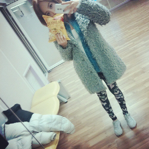 공개된 사진 속 니콜은 자신의 팬클럽 '콜링'에게 선물 받은 허니버터칩을 들고 서있다. 화려한 꽃무늬 레깅스에 두꺼운 털 외투를 매치한 니콜은 극세사 각선미를 자랑해 시선을 모은다.